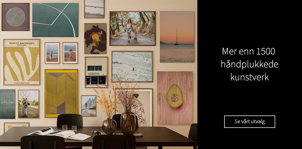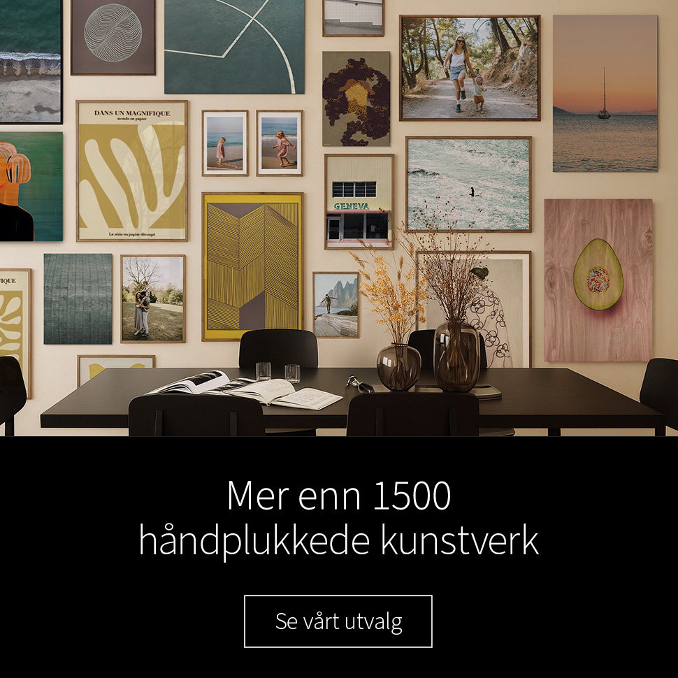 I vår Art Shop finner du alle typer kunst fra de dyktigste danske og internasjonale designerne, kunstnerne og fotografene. Her finner du grafiske motiver, stemningsfull fotokunst og design til barnrummet – kort sagt noe for enhver smak. Motivene er valgt ut i henhold til tidens trender, men sortimentet henvender seg også til deg som vil ha noe unikt på veggen.